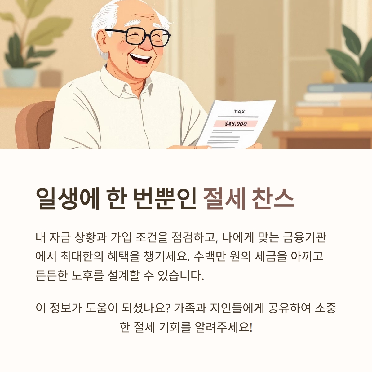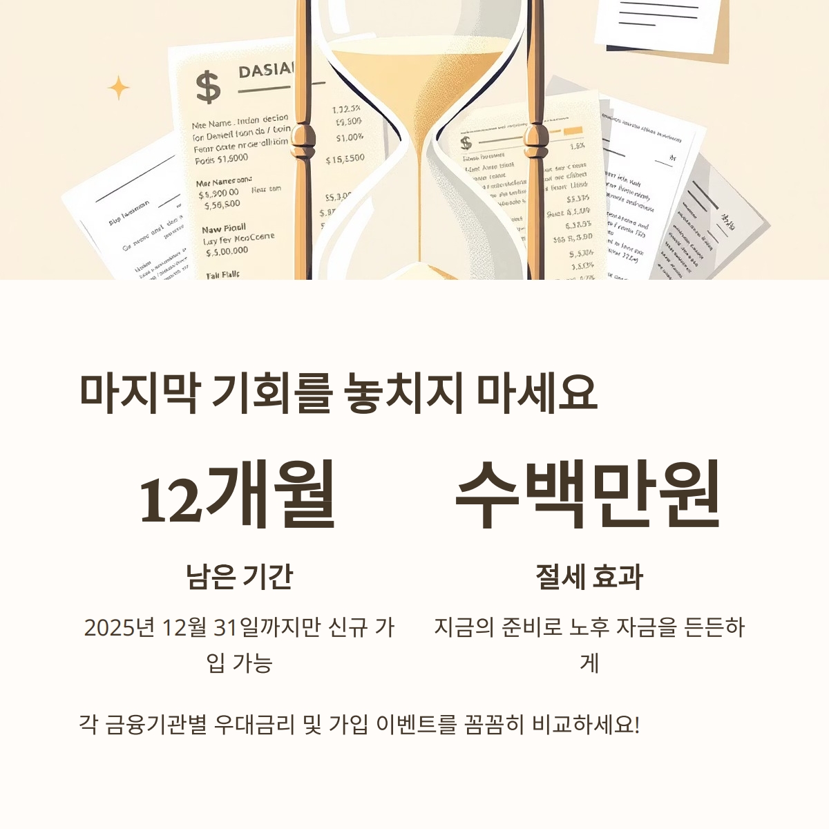 내년부터 정책이 대폭 달라지는 만큼, 지금의 준비만으로도 수백만 원의 세금을 아끼고 든든한 노후를 설계할 수 있습니다.