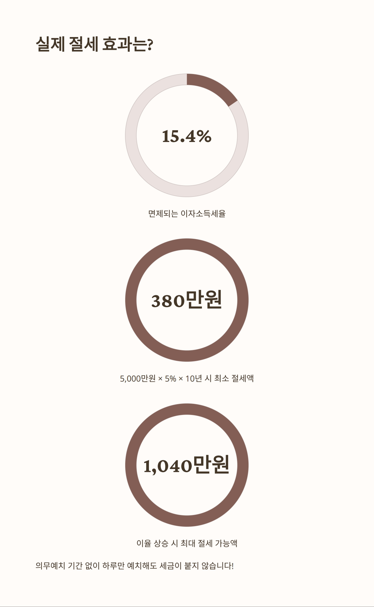 이자·배당소득에 대한 소득세(15.4%)가 완전히 면제되기 때문이죠.